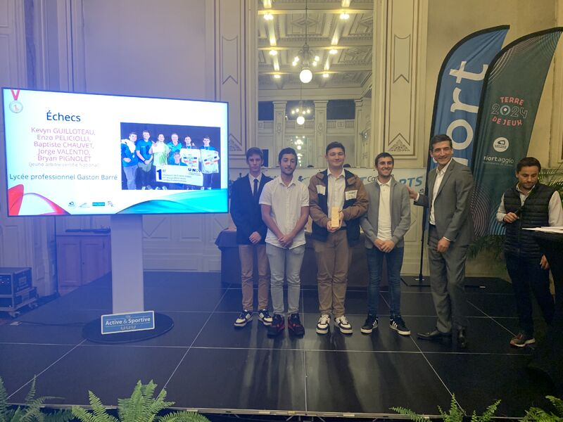 Bravo aux élèves du Lycée Gaston BARRÉ pour leur trophée du sport 2023 à la Mairie de Niort. Très belle soirée de récompenses pour les sportifs de Niort. Nos élèves sont valorisés pour leur participation et leurs parcours au Championnat de France UNSS | Union Nationale du Sport Scolaire jeu d'échecs.